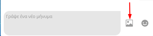 Μπορείτε να στείλετε μια φωτογραφία στη συνομιλία πατώντας το κουμπί που φαίνεται στην εικόνα: Θα έχετε τη δυνατότητα να επιλέξετε φωτογραφία από τον υπολογιστή σας (ή από το κινητό σας, αντίστοιχα). Σημειώστε ότι οι φωτογραφίες δεν πρέπει να ξεπερνούν τα 4MB και πρέπει να είναι σε μορφή jpg ή png. Διαφορετικά, η εικόνα δεν θα ανέβει.
