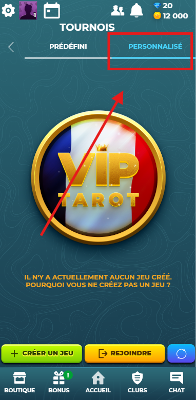 To access it, go to the Tournaments section and select Custom (next to the Default option).