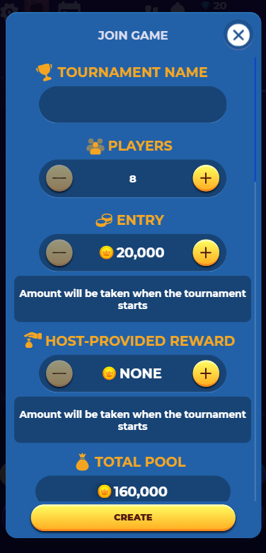A Custom Tournament lets you create your own tournament and invite the players you choose.