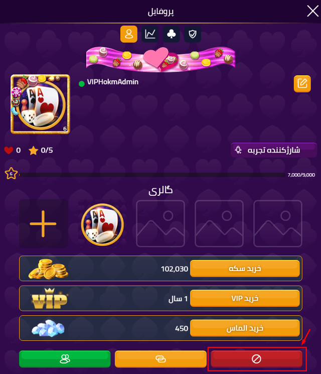 2. با نماد مسدود کردن بر روی دکمه قرمز کلیک کنید.