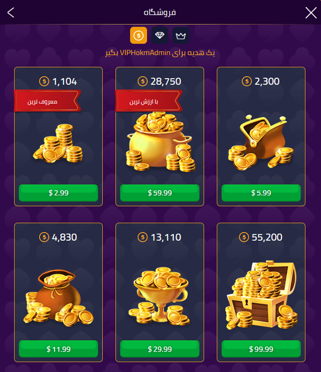 شما به طور خودکار به فروشگاه بازی ما هدایت می شوید که در آنجا می توانید ژتون ، عضویت VIP و سنگهای قیمتی را برای دوست خود خریداری کنید.