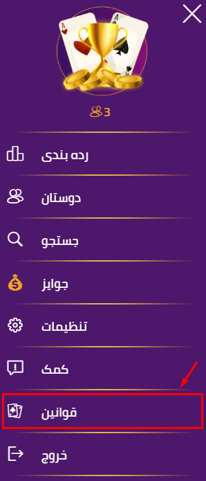 بر روی سه خط افقی (دکمه منو) در گوشه سمت چپ بالای صفحه کلیک کنید تا منوی اصلی باز شود. به پایین بروید و روی RULES کلیک کنید.
