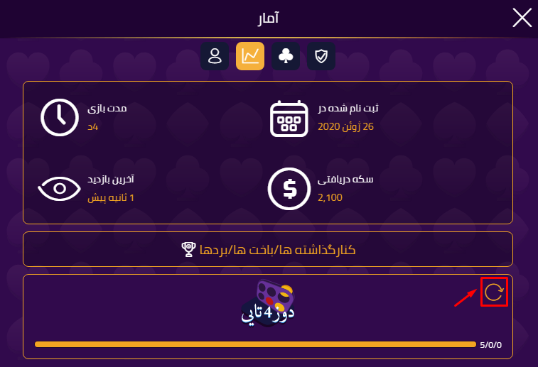 اگر روی آن کلیک کنید ، می توانید آمار خود را فقط برای بازی صفر تنظیم کنید.