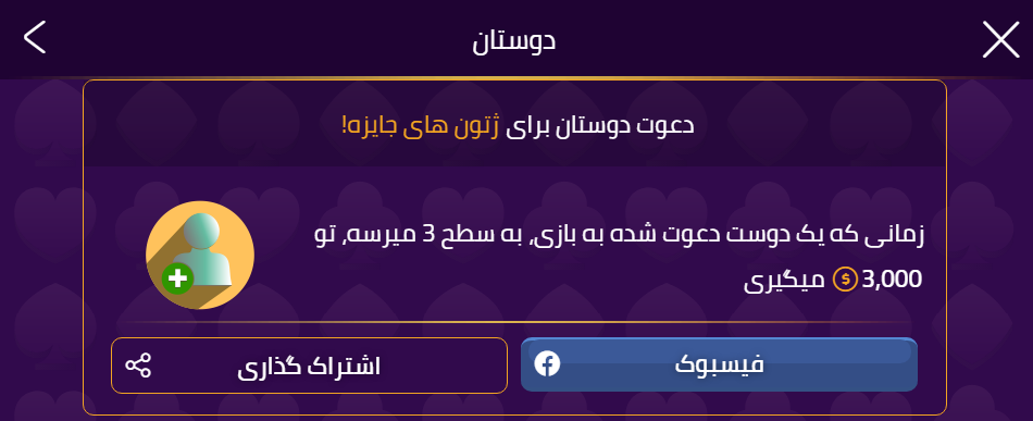 لطفاً توجه داشته باشید که اگر دوست شما از سه نفر مختلف سه دعوت نامه دریافت کند ، فقط بازیکنی که از طریق آنها ثبت نام کرده اید ، ژتون های جایزه دریافت می کند. "