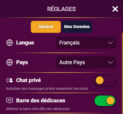 Vous trouverez l’option pour désactiver cette barre dans le menu des paramètres, sous l’option « Barre des Dédicaces ».